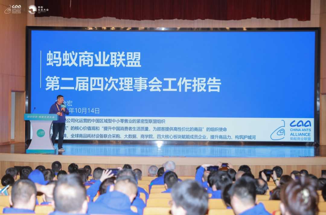 “先解決有沒有,再解決好不好,如今的螞蟻商聯(lián)已從有沒有向好不好轉(zhuǎn)變”。螞蟻商聯(lián)董事長、理事長吳金宏先生在《年度工作報告》中提到,螞蟻商聯(lián)目前100多家成員企業(yè)已覆蓋29個省、市自治區(qū),持續(xù)提升螞蟻商業(yè)聯(lián)盟的規(guī)模和影響力,用四輪驅(qū)動服務(wù)模式深度賦能成員企業(yè),系統(tǒng)介紹了新自有品牌、萬噸萬箱計劃、店型解決方案,以及下一步賦能升級和企業(yè)間交流活動。