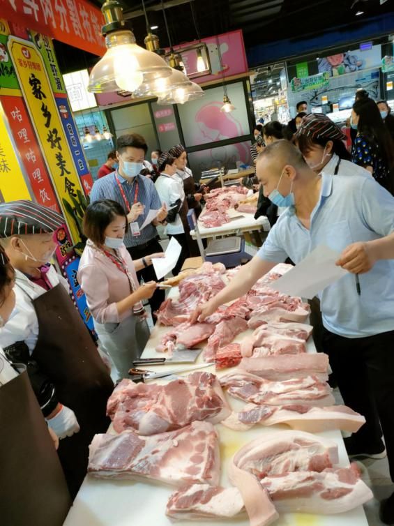 剔骨刀百轉(zhuǎn)千回,斷骨刀鏗鏘有力,轉(zhuǎn)眼間半片豬就被精準(zhǔn)地分割成前腿、后腿、五花肉、排骨……21份單品,場(chǎng)面尤為激烈。這讓賽場(chǎng)外的顧客們也大飽眼福,連連感嘆,竟意外成了為選手們加油的拉拉隊(duì)。而且還在不停詢(xún)問(wèn)購(gòu)買(mǎi)信息,看來(lái)他們是做好了搶購(gòu)分割肉的準(zhǔn)備,果然,切割后的成品豬肉銷(xiāo)售異常火爆,被圍觀許久的顧客搶購(gòu)一空。