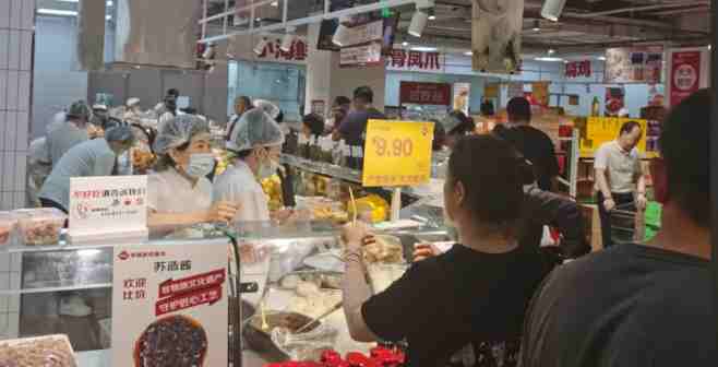 除此之外,該店在經(jīng)營上的另外一個明顯特點(diǎn)是,雖然突出硬折扣,但保留了蔬果生鮮、水產(chǎn)活鮮和熟食加工等對于周邊居民消費(fèi)有著強(qiáng)購物黏性民生品,使得該店對于周邊社區(qū)購物人群的覆蓋達(dá)到最大化。